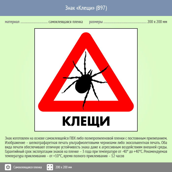 Знак «Клещи», B97 (пленка, 300х300 мм) в Волжском купить
