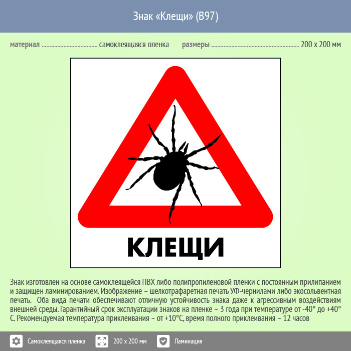 Знак «Клещи», B97 (пленка c ламинированием, 300х300 мм) в Волжском купить