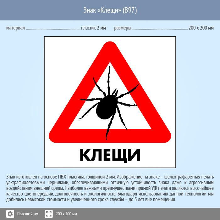 Знак «Клещи», B97 (пластик, 300х300 мм) в Волжском купить