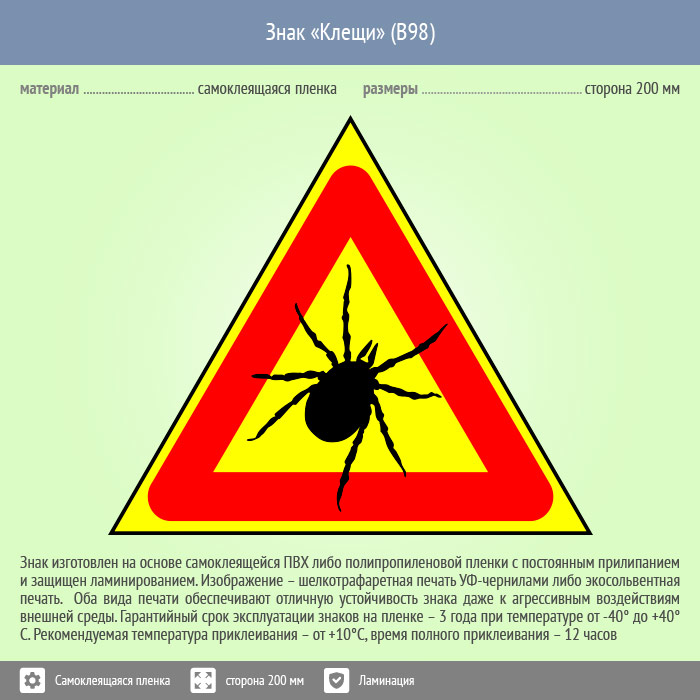 Знак «Клещи», B98 (пленка c ламинированием, сторона 300 мм) в Волжском купить
