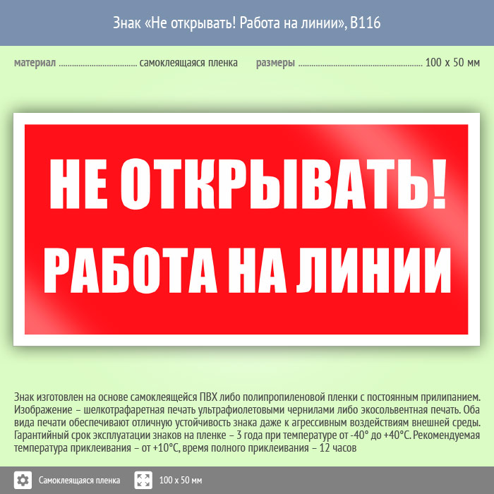Знак «Не открывать! Работа на линии», B116 (пленка, 100х50 мм) в Волжском купить