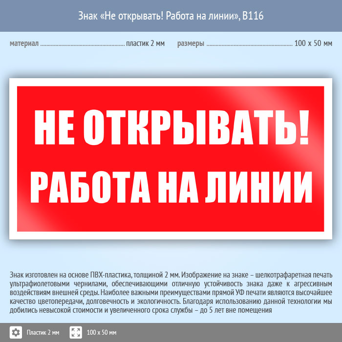 Знак «Не открывать! Работа на линии», B116 (пластик, 100х50 мм) в Волжском купить