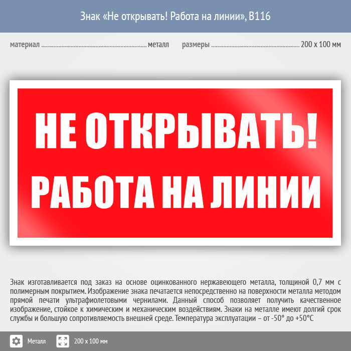 Знак «Не открывать! Работа на линии», B116 (металл, 200х100 мм) в Волжском купить