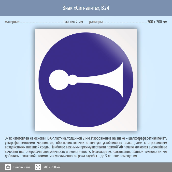 Знак «Сигналить», B24 (пластик, 200х200 мм) в Волжском купить