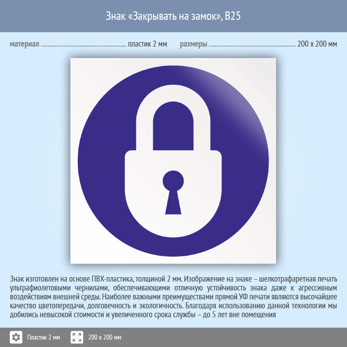 Знак «Закрывать на замок», B25 (пластик, 200х200 мм) в Волжском купить