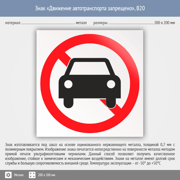 Знак «Движение автотранспорта запрещено», B20 (металл, 200х200 мм) в Волжском купить