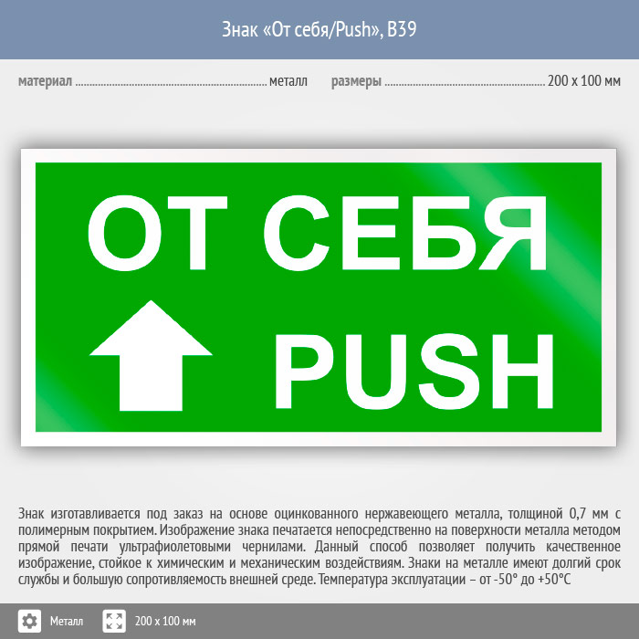Знак «От себя/Push», B39 (металл, 200х100 мм) в Волжском купить