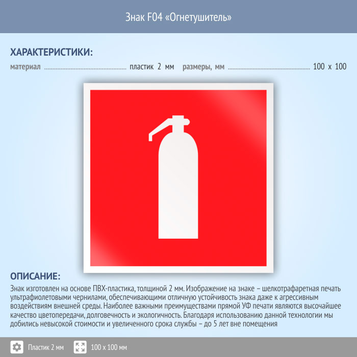 Знак F04 «Огнетушитель» (пластик, 100х100 мм) в Волжском купить