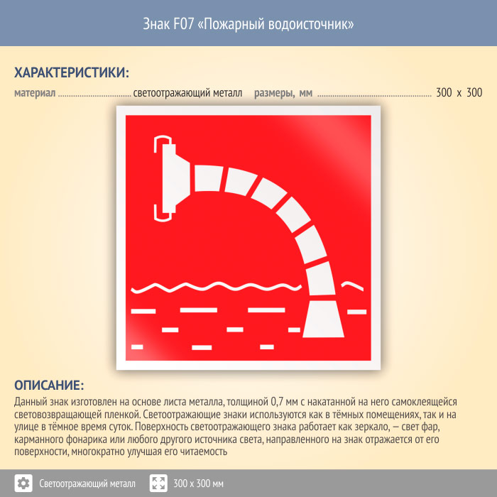 Знак F07 «Пожарный водоисточник» (светоотражающий металл, 300х300 мм) в Волжском купить