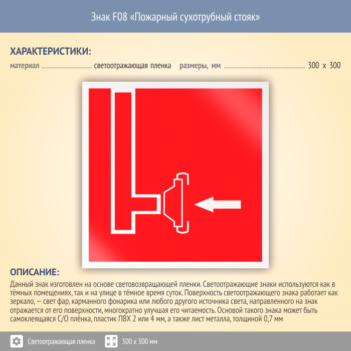 Знак F08 «Пожарный сухотрубный стояк» (светоотражающая пленка, 300х300 мм) в Волжском купить
