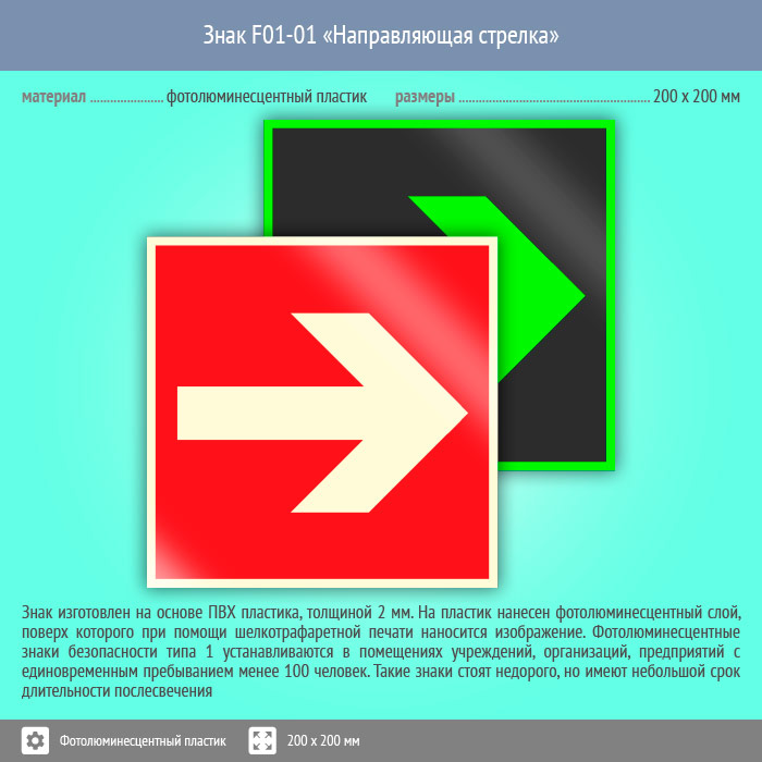 Знак F01-01 «Направляющая стрелка» (фотолюминесцентный пластик, 200х200 мм) в Волжском купить