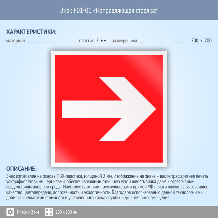Знак F01-01 «Направляющая стрелка» (пластик, 200х200 мм) в Волжском купить
