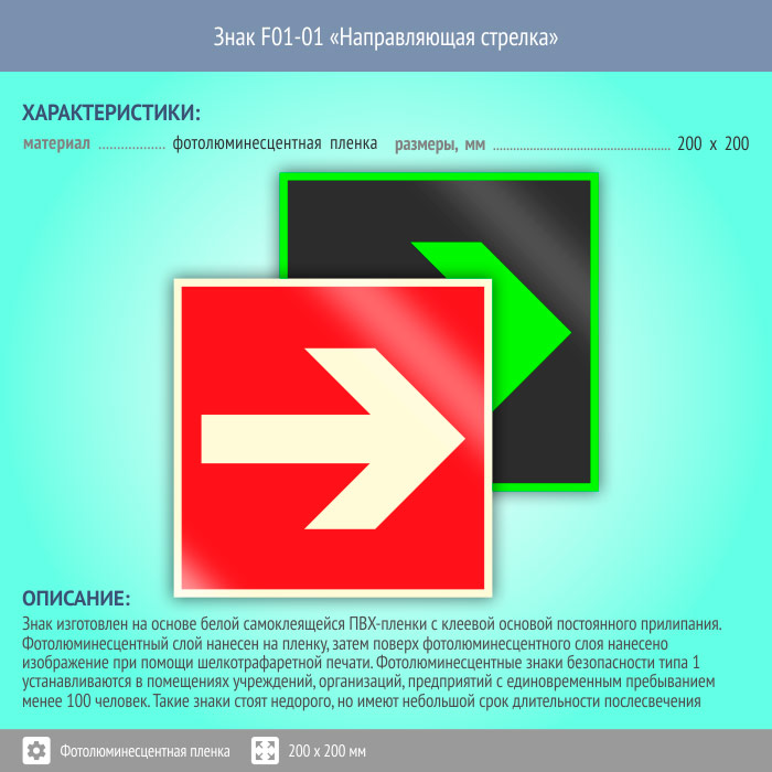 Знак F01-01 «Направляющая стрелка» (фотолюминесцентная пленка, 200х200 мм) в Волжском купить