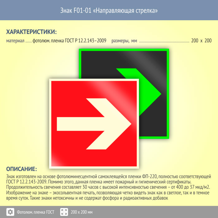 Знак F01-01 «Направляющая стрелка» (фотолюминесцентная пленка ГОСТ 34428-2018, 200х200 мм) в Волжском купить