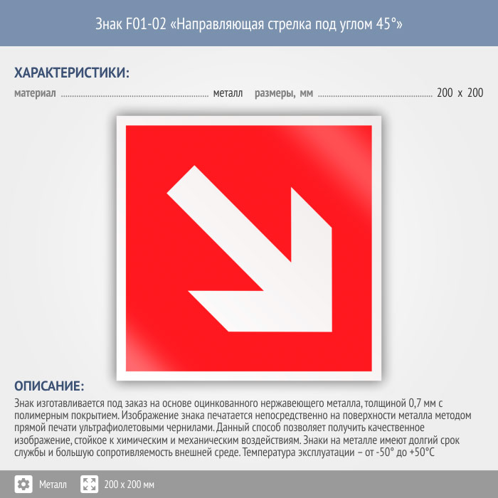 Знак F01-02 «Направляющая стрелка под углом 45°» (металл, 200х200 мм) в Волжском купить