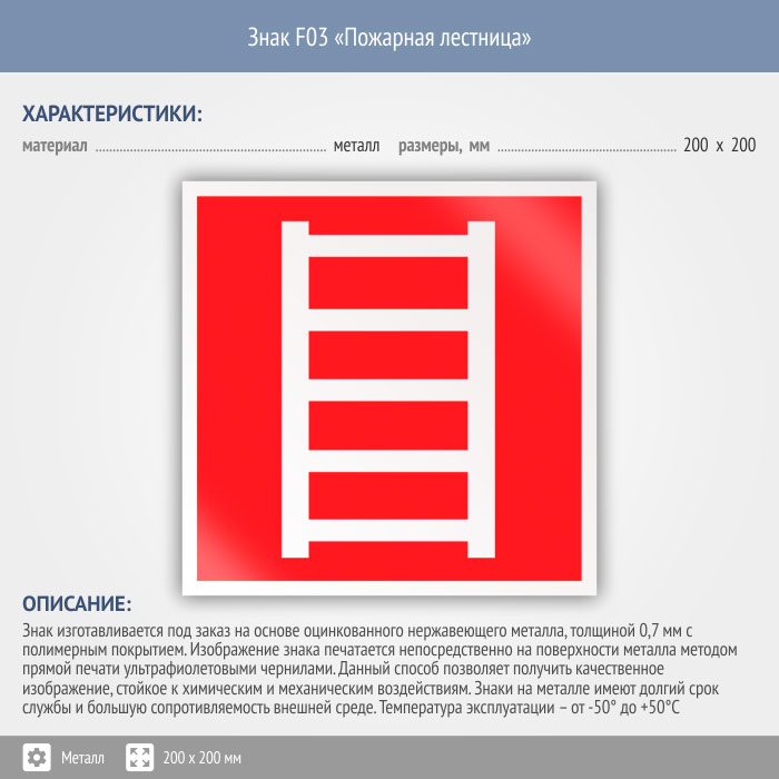 Знак F03 «Пожарная лестница» (металл, 200х200 мм) в Волжском купить